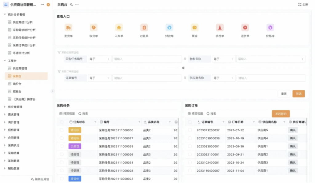 3. 采购台:业务操作的“一站式入口”