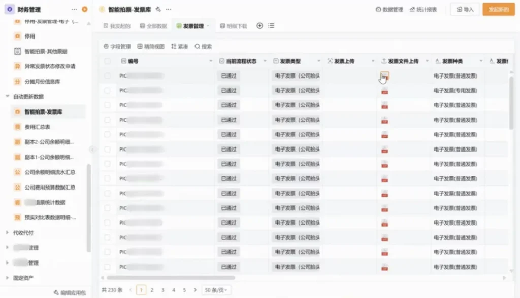 使用轻流之前,纸质报销或打印电子发票提交没有查重功能,存在重复报销风险;发票退回后状态无法更改,流程不可逆,财务审核后需手动调整数据,工作量大。后来,公司在轻流上搭建了电子发票识别功能与发票库,实现发票自动查重,避免重复提交;