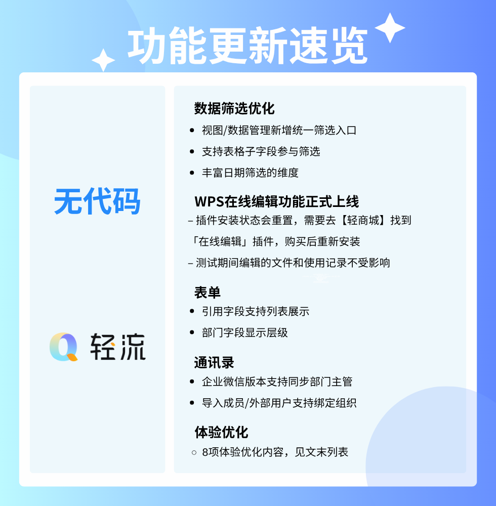 无论是想快速查数据、顺畅编辑文档,还是让组织管理更清晰,轻流这次更新都能满足你!点击轻流,用新功能解决老问题,让每天的工作更高效、更轻松~