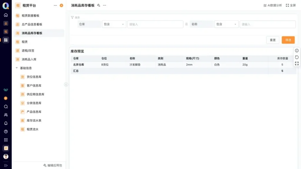 资产与消耗品库存数据模糊,无法实时掌握实际数量,易出现缺货延误租赁业务或积压占用资金的情况。