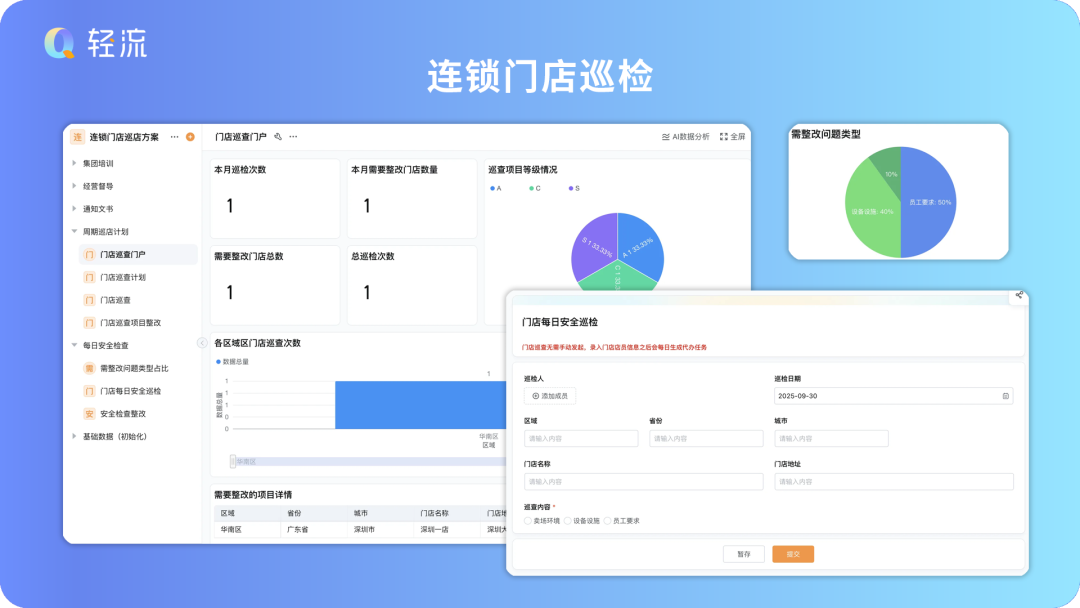针对连锁门店的周期性巡查、日常安全管理、问题整改跟踪等场景,解决传统门店管理中 “信息分散、巡检不规范、整改难追踪” 的痛点。